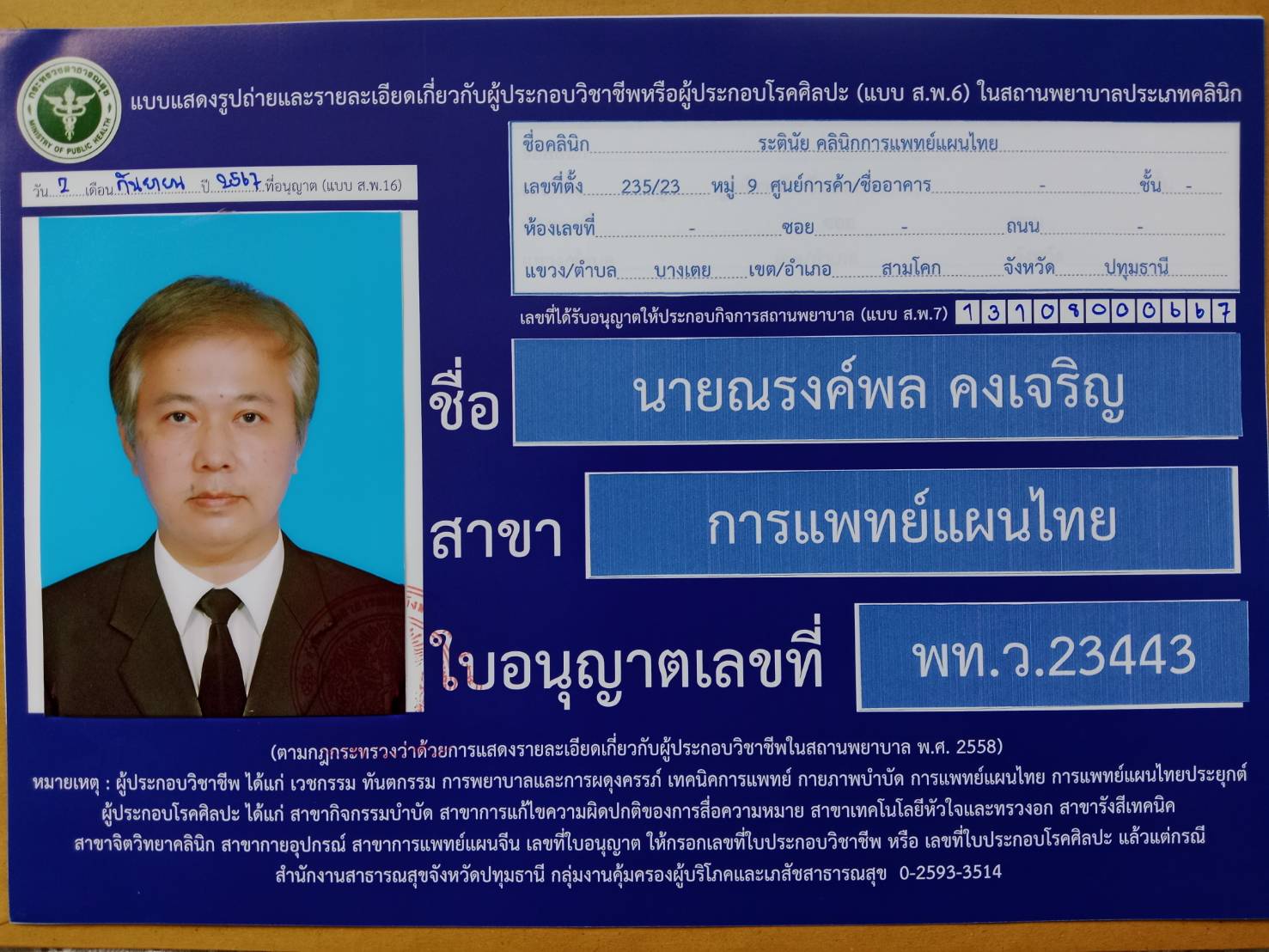 - ขึ้นทะเบียนคลินิกการแพทย์แผนไทยกับกระทรวงสาธารณสุข
